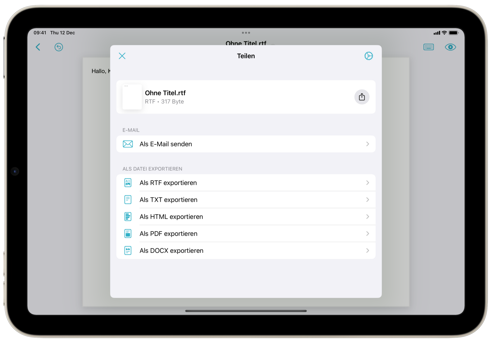 Als RTF, TXT, HTML, PDF oder DOCX exportieren
